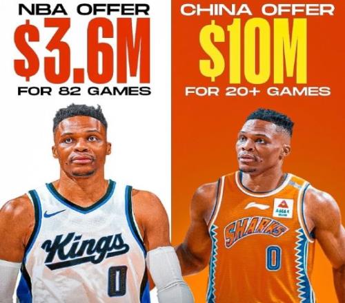 至于美媒Clutch Points报道表示,多家媒体报道过CBA给威少开出年薪1000万-1400万美元的报价。至于萨克拉门托电台主持人Dave Carmichael还表示,这份中国球队的报价合同,威少只需要打半个赛季,出场数大概在23场比赛左右,且如果帮助球队打进季后赛,薪资还能上涨。