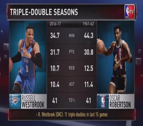 三双中的场均31.6分成为该赛季联盟得分王,领先第二名哈登的29.1分,这个场均得分数据在NBA总历史得分王榜单中排名第36,目前NBA的最高得分王纪录是1961-62赛季张伯伦创造的场均50.3分,很难被打破。