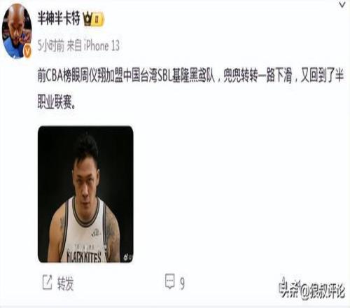 北京时间10月22日,根据媒体人“半神半卡特”报道,前CBA榜眼周仪翔加盟中国台湾SBL基隆黑鸢队,又回到了半职业联赛。