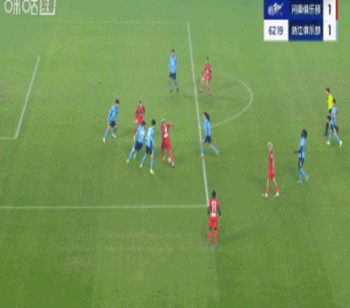 第55分钟,王钰栋左路下底送精准过顶,亚戈-卡列洛小角度打门得手,浙江1-1扳平!