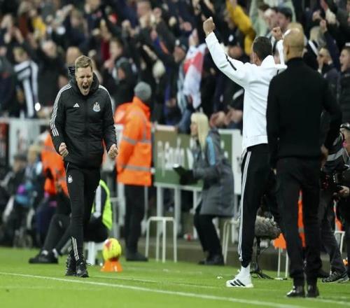 当埃迪-豪步入球场与球员们致意时,长期共事的助教丁达尔伸手揽住了这位纽卡斯尔联主教练的肩膀。尽管两人已在终场哨响的边线处拥抱过,但这场2比1的主场胜利意义非凡,足以让他们再度庆祝——喜悦与释然交织。
