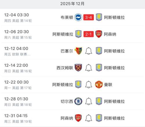 在12月的剩余赛程里,他们下周五将在欧联杯迎战巴塞尔,接着将客场迎战西汉姆联,在那之后,他们要在英超当中连续面对曼联、切尔西和阿森纳。