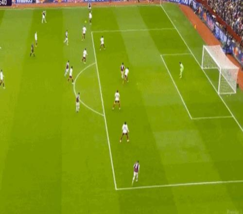 罗杰斯左路传中,沃特金斯抢点未果,埃泽后点漏人,卡什小角度扫射,打穿拉亚的小门,1-0!