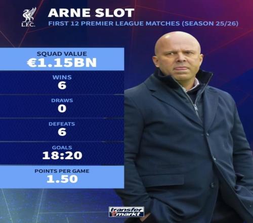 球队身价第一成绩却是倒数利物浦这成绩还能替斯洛特开脱吗