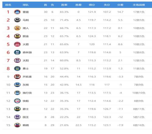 太阳赢球后21胜14负,继续排名西部第七,领先第八的勇士2.5个胜场,雷霆输球后4连胜终结,战绩30胜6负继续稳居联盟第一。