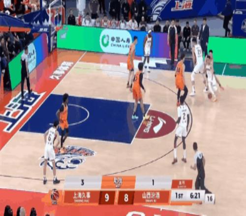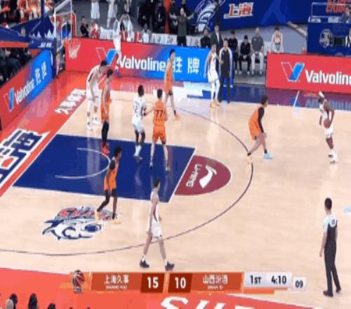 暂停过后,山西队做出调整,迪亚洛替补状态不佳的奈特上场。上海男篮也做出应对,闫鹏飞、怀特塞德上场给足对手内线压力。古德温与怀特塞德一里一外很快帮助上海男篮把分差拉开到了两位数。