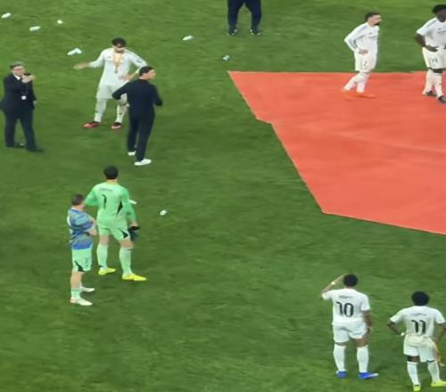 在皇马与巴萨的比赛结束后,皇马被拍到将帅不和一幕。阿隆索招手示意皇马球员走过来,列队祝贺巴萨夺冠,姆巴佩伸手表示拒绝,招呼阿隆索过来,让阿隆索别这么做,随后罗德里戈也跟着姆巴佩做了同样的动作。最后姆巴佩带着皇马全队离开颁奖典礼,没有列队祝贺巴萨。到底谁是皇马主帅?谁说了算?姆巴佩也太大胆了吧?而其他皇马球员也听姆巴佩的,站在姆巴佩这边,跟随姆巴佩离场。这引发了巴萨上下的不满,认为皇马没有风度。