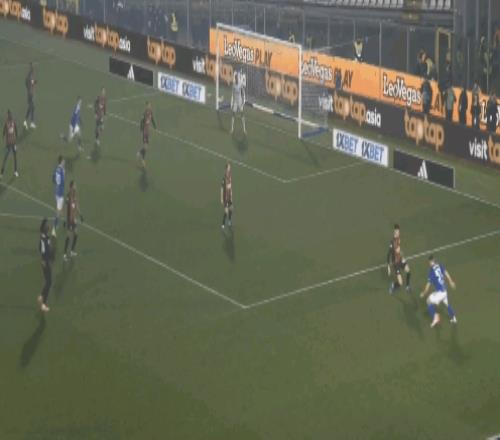 39′45″沃伊沃达右路晃开巴特萨吉后传中,中路达库尼亚从弗法纳和托莫里之间杀出,近距离射门被麦尼昂下意识挡开并靠二次反应破坏了补射。而这个熟悉的进攻跑位套路上一场戈森斯就完成了两次之多。