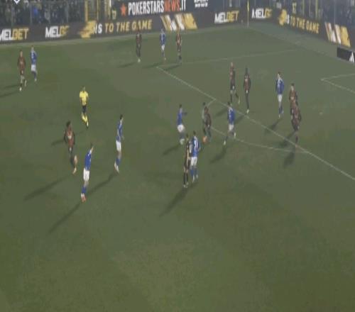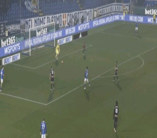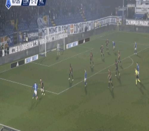 科莫门将布特斯一脚直塞就让队友直接面对米兰的后卫。