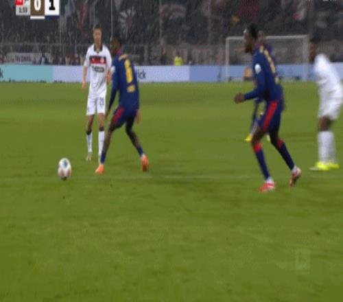 莱比锡惨败给拜仁后,不仅追赶拜仁无望,还跌出了前3,甚至在少赛的情况下还跌出了前4。今天客场对阵垫底的副班长圣保利,是莱比锡重回前4,甚至超过霍芬海姆回前4的机会。只是开场后莱比锡遭到圣保利的顽强对抗,第17分钟,圣保利就率先制造杀机,日本球员藤田让瑠中线处送出手术刀式直塞,琼斯插上获得超级单刀机会,只是琼斯思考人生,慢吞吞的调整,被拼命回追的奥尔班将球铲出底线。