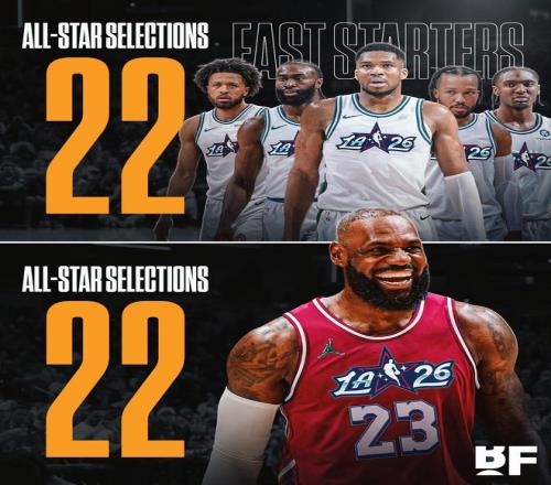 值得一提的是,东部首发五人:坎宁安、布朗、字母哥、布伦森、马克西累计入选次数同样为22次。