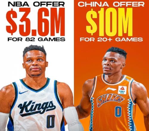 北京时间10月15日,当36岁的威少至今在NBA未能找到工作,近期屡屡有美国自媒体编造CBA报价威少的谣言,尤其是传言给威少开出半赛季1000万-1400万美元的报价。如今针对如此离谱的