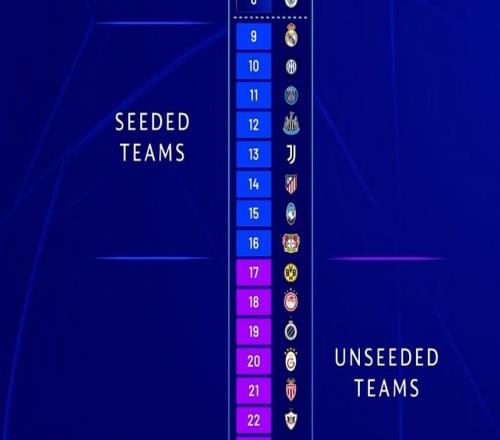 1月30日19:00,欧冠淘汰赛附加赛的抽签仪式在瑞士尼翁举行,16支球队将捉对厮杀,胜者晋级欧冠16强。抽签规则附加赛的对阵依据球队在欧冠联赛阶段的最终排名来决定: 分档配对原则