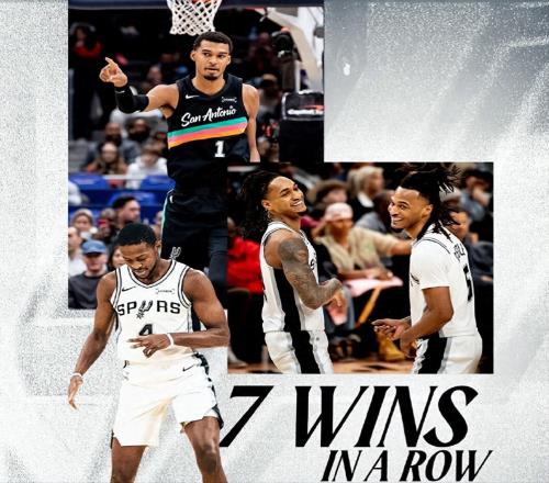 马刺近期表现强势,连续两次击败西部第一雷霆,其中一场为20分大胜,另一场在NBA杯半决赛以111-109险胜终结对手16连胜。文班亚马复出后以替补身份贡献关键影响力,两战均发挥重要作