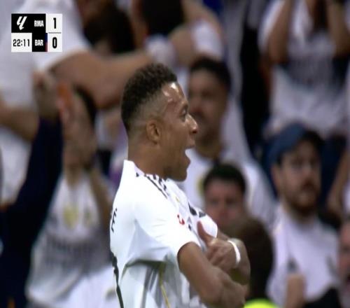 西甲第10轮国家德比,皇家马德里主场对阵巴塞罗那,上半场姆巴佩破门为皇马取得领先,至此,姆巴佩对阵巴萨已打入12球,且连续4场国家德比取得进球。此役主场对阵巴塞罗那,姆巴佩在比