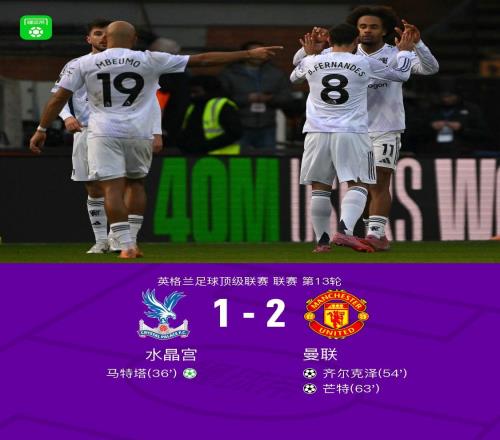 体能优势助曼联逆转水晶宫英超第13轮水晶宫 1-2 曼联进球:马特塔 36'(点球);齐尔克泽 54',芒特 63'凭借齐尔克泽和芒特的进球,曼联在11月30日晚客场2比1逆转击败水晶宫,不仅终结了